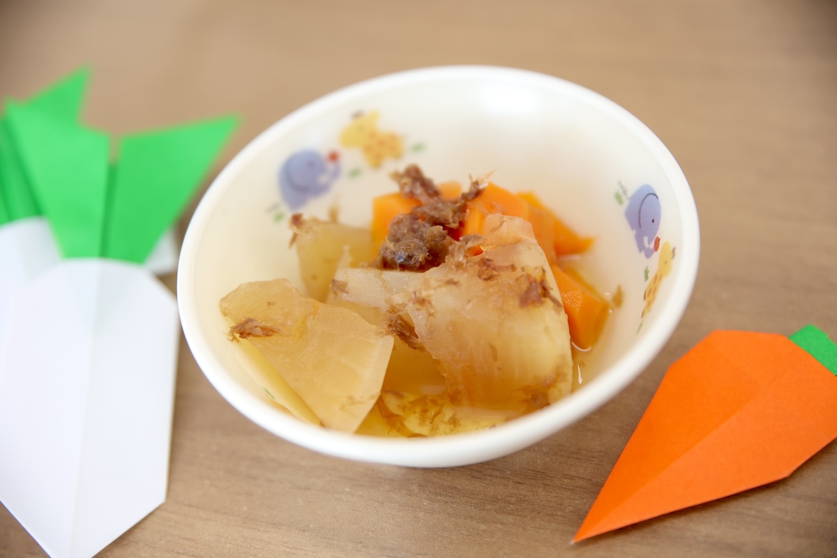 ②鍋に【☆煮汁】を入れて中火で熱し軽く煮立たせ、大根・人参を加える。