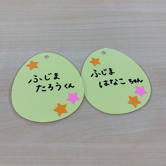 このブログのトップ画(サムネイルの写真)に載っている、可愛いたまご型の名札です♪