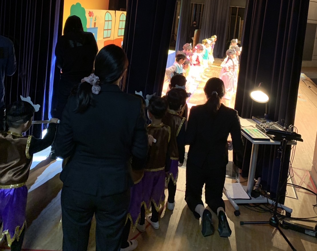 舞台袖で子ども達を見守っていたり、次の劇に向けて絵を貼り替えたりと他の職員もそれぞれの場所で子ども達の劇を支えてくれていました!