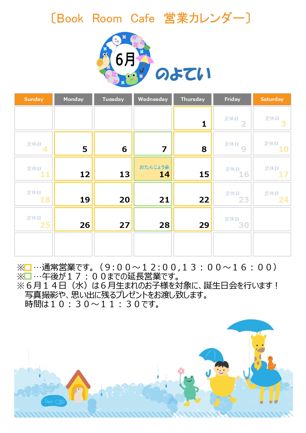 おまたせいたしました!6月の営業日はこちらです☆