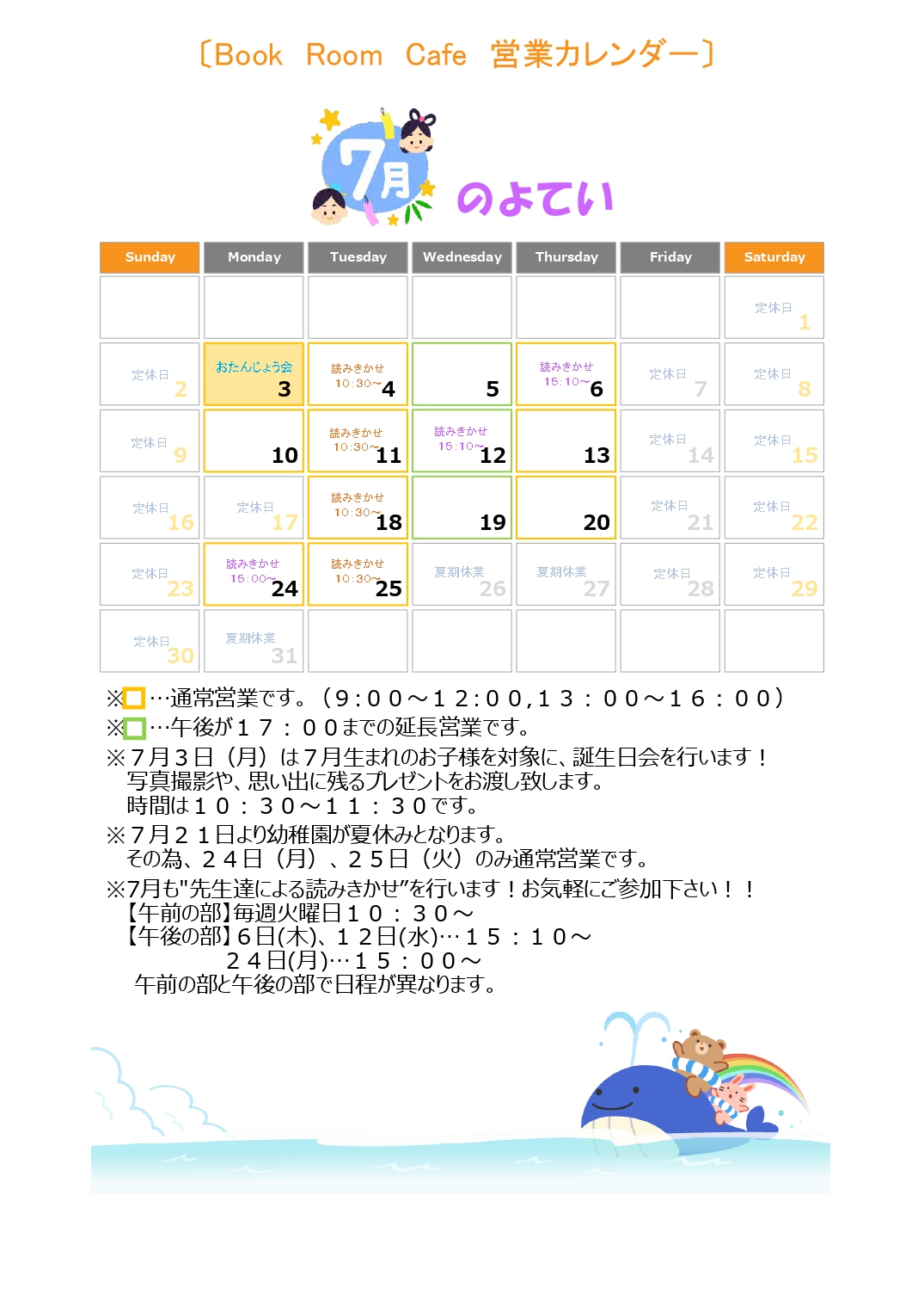 ◎21日から園が夏期休暇の為、24日(月)、25日(火)のみ通常営業です。