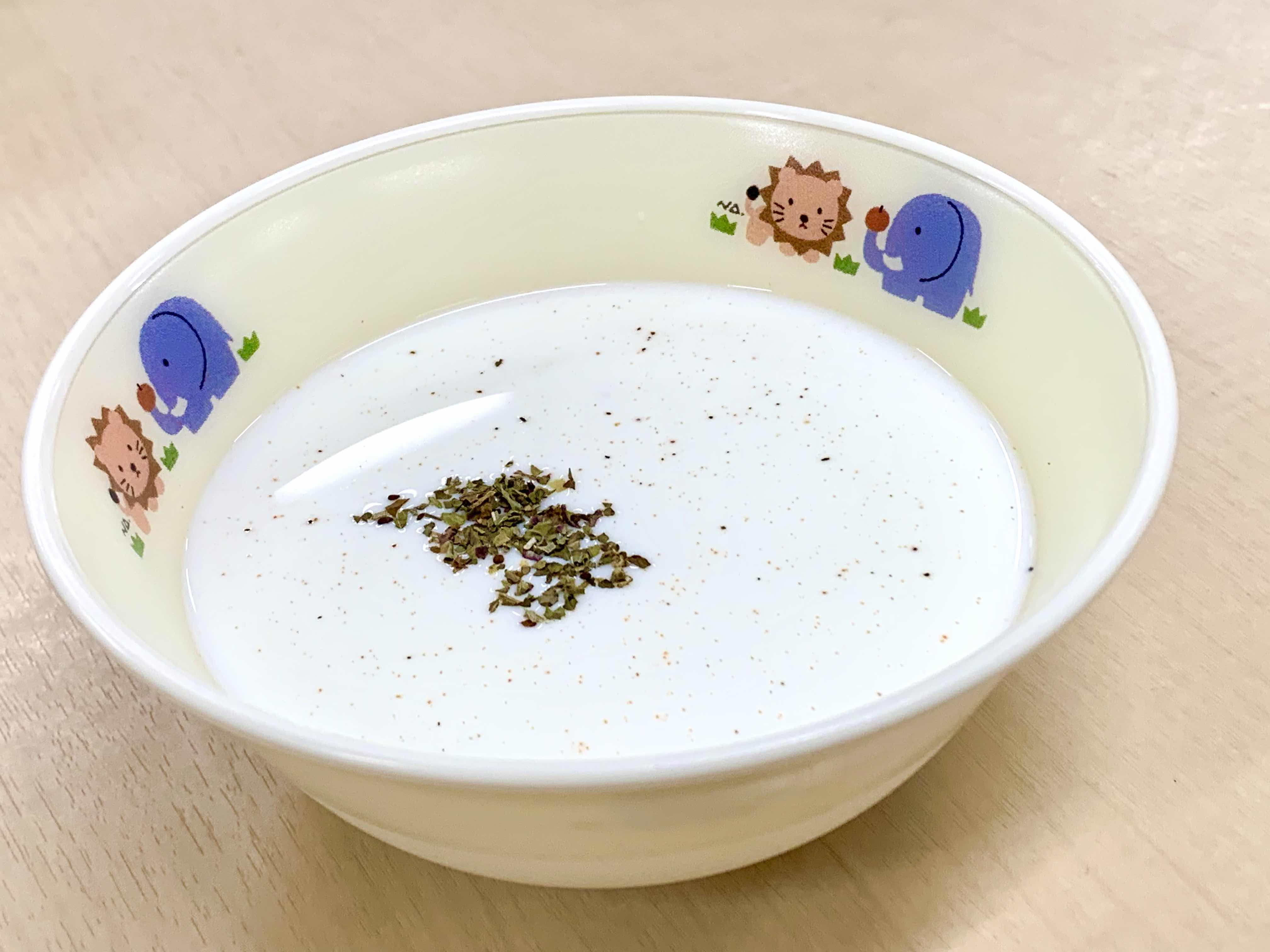 ⑤ 弱火にし、①と牛乳を加え3分ほど煮込み、塩・コショウで味を整える。