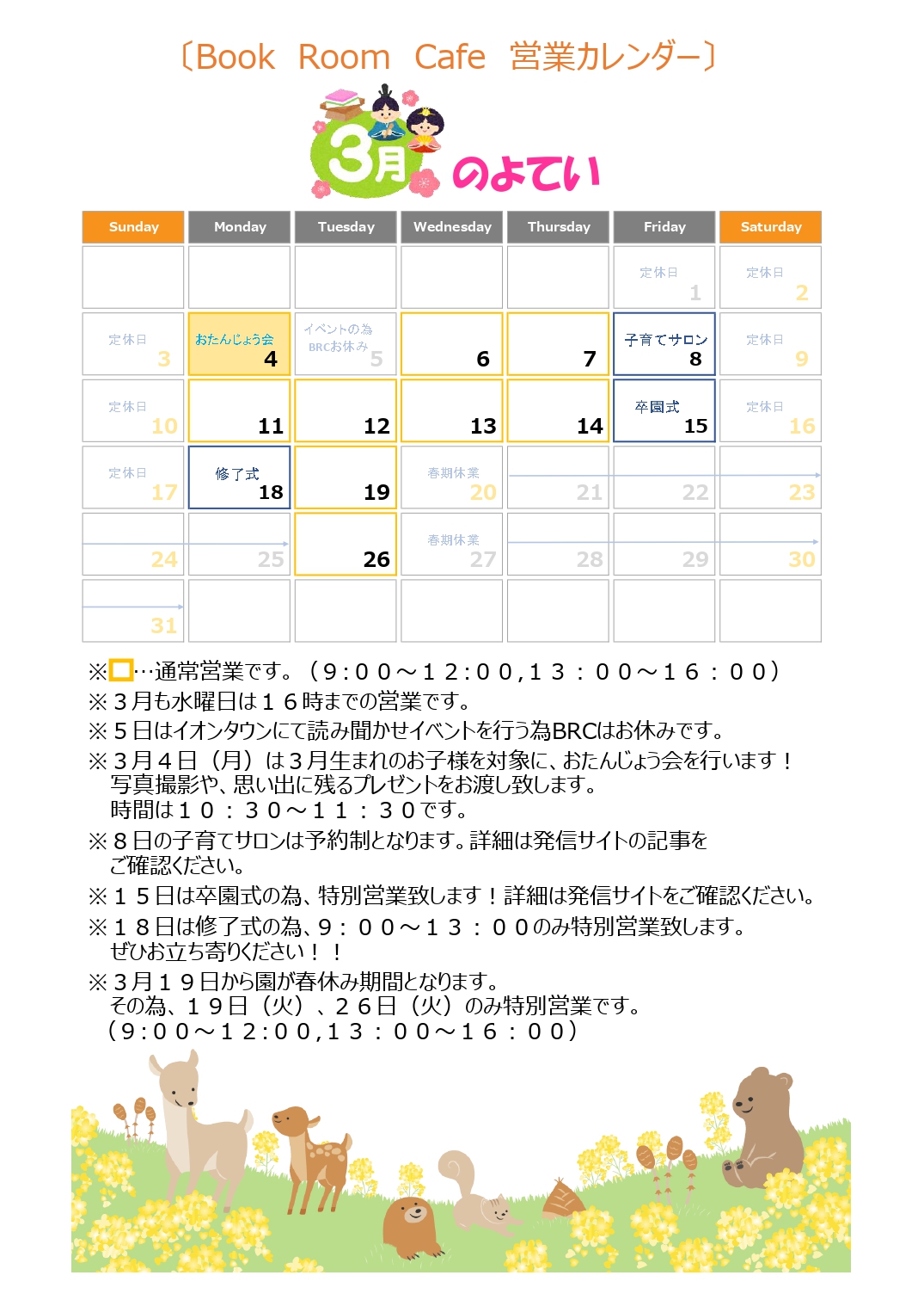 3月19日から園が春休み期間となります。その為、2日間のみ特別営業致します!