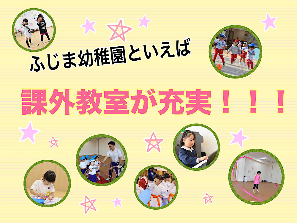 ふじま幼稚園でなが〜く行われている課外教室のひとつ!卒園児のゆうか先生もスポーツ教室出身で、今でも逆立ちができます!(すごい!!)運動能力だけじゃなく、礼儀や心の逞しさも養えるはず〜!