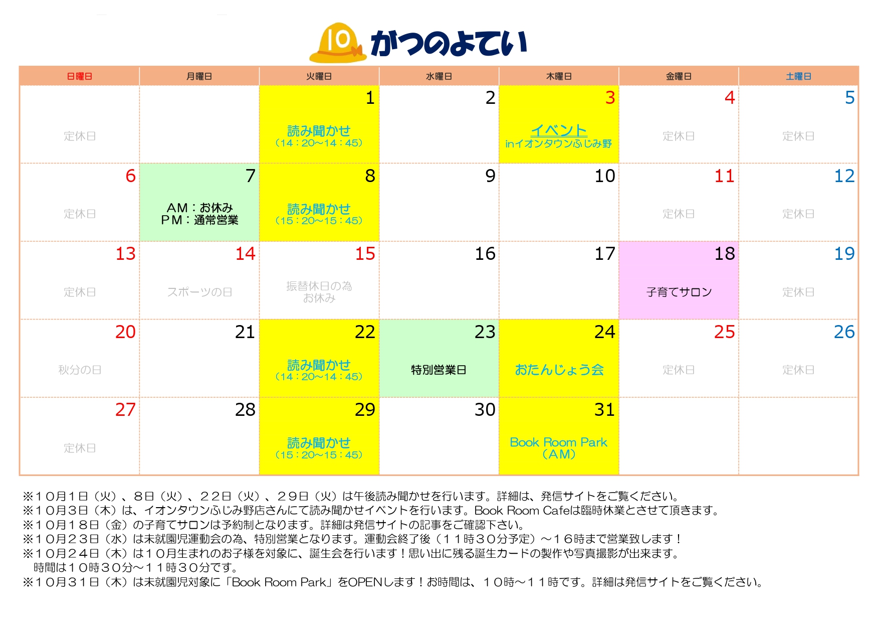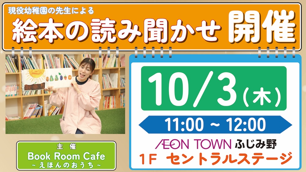 ◎10月3日(木)は、イオンタウンふじみ野店さんにて読み聞かせイベントを行います♬その為、Book Room Cafeはお休みです。